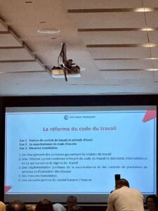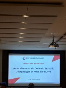 Dans le cadre de notre veille réglementaire, nous avons participé au séminaire organisé par la Chambre de Commerce et d’Industrie Tuniso Française CCITF, portant sur les récentes évolutions du Code du travail 📖